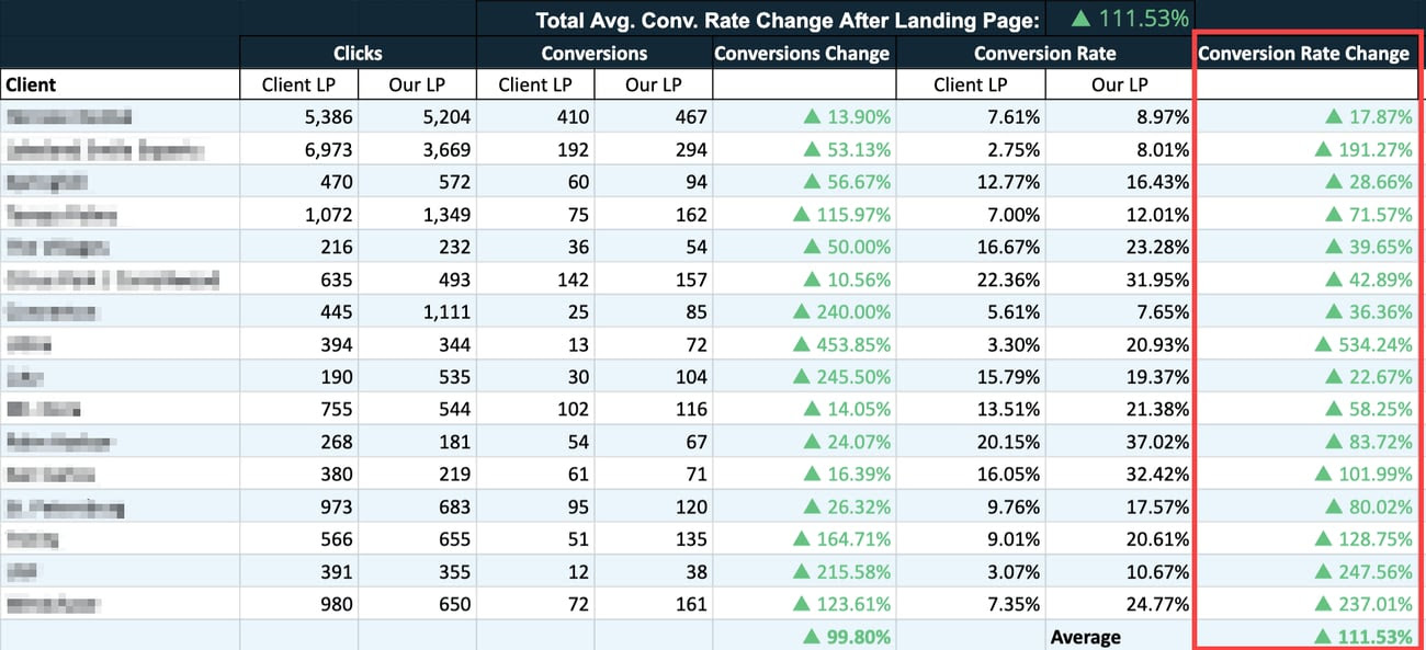 Results Achieved: Every client saw an increase in conversion rate, with an average increase of 111% – leading to significantly lower cost-per-lead.
